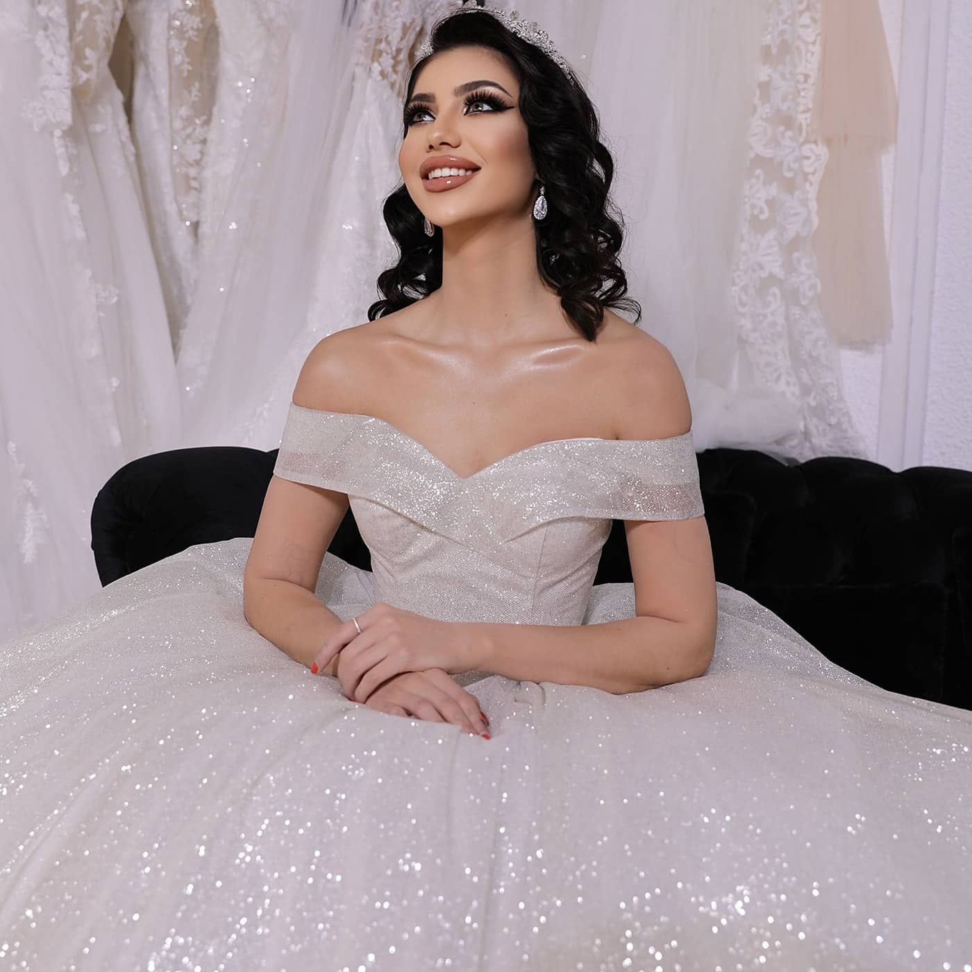 The design includes an elegant train. It is a beautiful choice for brides who want femininity, refinement, and confident movement throughout the event.